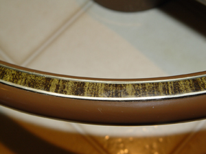 From a 1976 Seville. Will fit other years and models. No cracks in molded brown body. As illustrated, one spot on the woodgrain inlay is missing. I can supply some extra inlay material. When you feel around the edges of the inlay, There are spots where its loose. These spots would need to be resealed. Price: $195.00