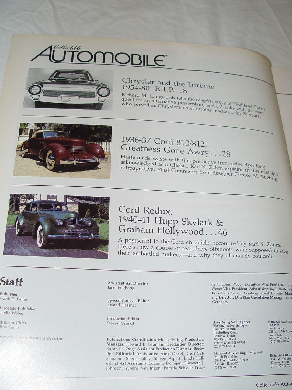- 1936 -37 Cord 810/812; 23 page article detailing this great car. Lengthy