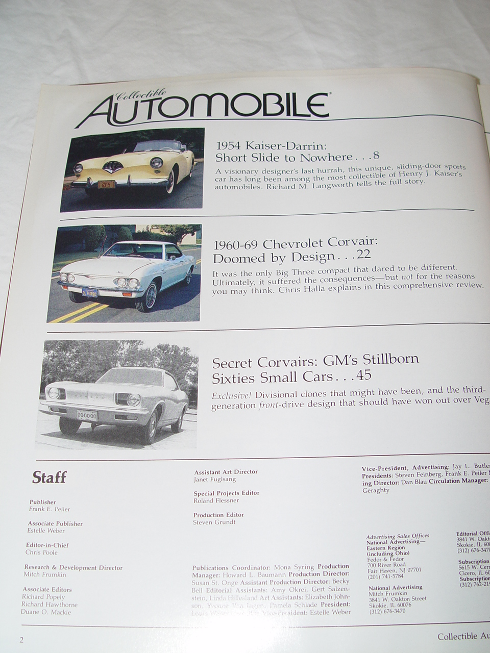 - 1960-69 Corvair; 24 page article with lots of pictures including van and pickup.