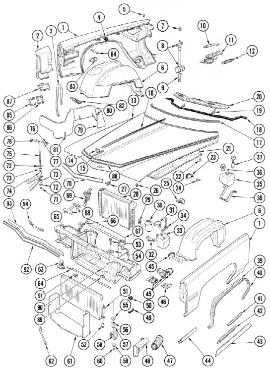 | 65. | Radiator core support | -- | -- | -- | 250.00 | ||||
