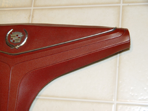 From a 1976 Seville. Will fit other years and models. No cracks in molded brown body. As illustrated, one spot on the woodgrain inlay is missing. I can supply some extra inlay material. When you feel around the edges of the inlay, There are spots where its loose. These spots would need to be resealed. Price: $195.00