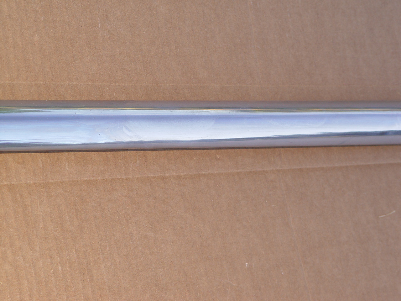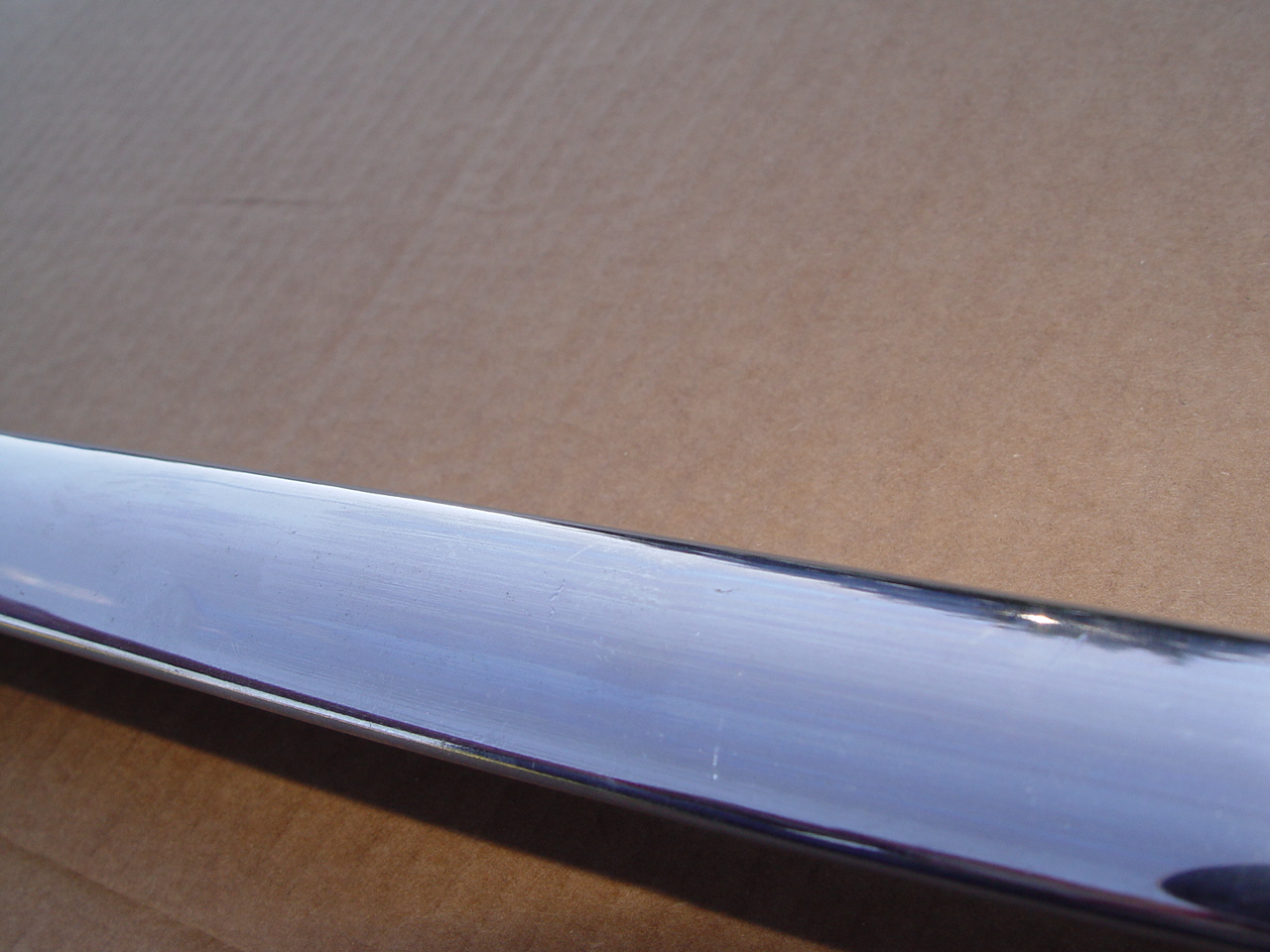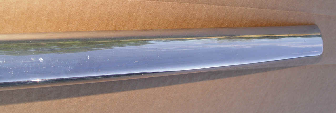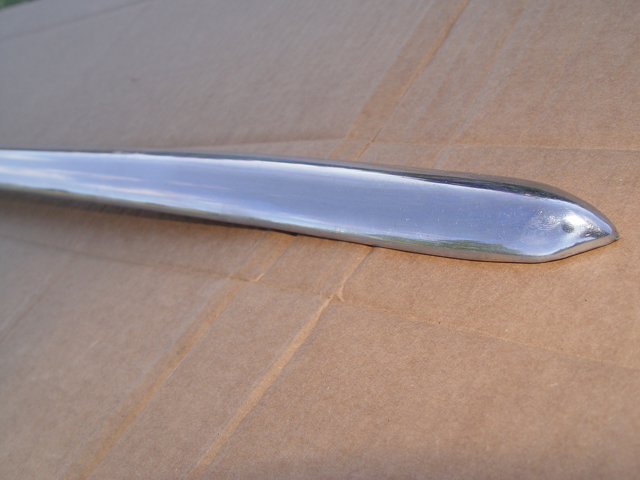A very fine piece. No dents, dings, scrapes. Just real nice chrome. Suitable for a show car. Proper curviture for mounting on the quarter fender.